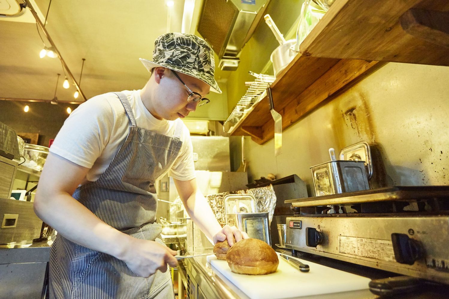 「『グレイトフルバーガー』はすべて手づくりされているので、何もかもが勉強になりました。『キッチンサンサーラ』は洋食店なんですが、ハンバーガーの移動販売もされていたので、そのノウハウも学びたくて。一種類に偏らず吸収できたのも良かったです。ただ、どちらも忙しい時間帯に入る短時間の勤務だったので、ほかにもアルバイトをかけもちしていました。一時期、朝はパン屋さん、お昼はハンバーガー、夕方はカフェ、夜はバルなんてこともありましたね」