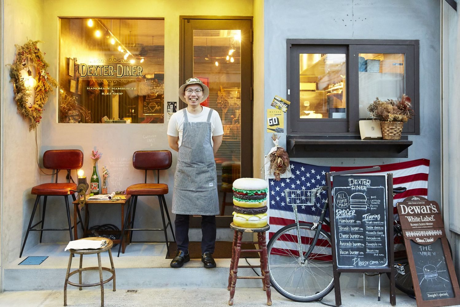 中崎町は大阪・梅田駅からも徒歩圏内。レトロでお洒落な店も多く、若者や旅行客にも人気のエリアだ。その一角に2018年6月、自分の好きなテイストを詰め込んだハンバーガー店『デクスターダイナー』をオープン。その立地の良さやインスタグラムによる発信なども手伝って、集客は徐々にアップしていった。