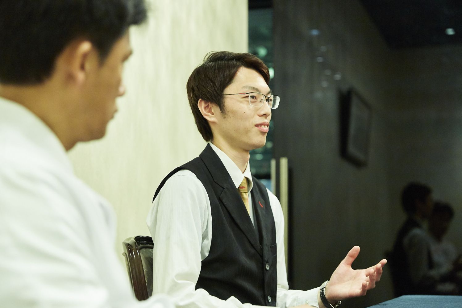 すでに同店で働いていた辻󠄀調グループの同級生を介して募集を知り、就職を志望。「いずれは海外で仕事をしたい」という目標も伝えたうえで採用に至った。