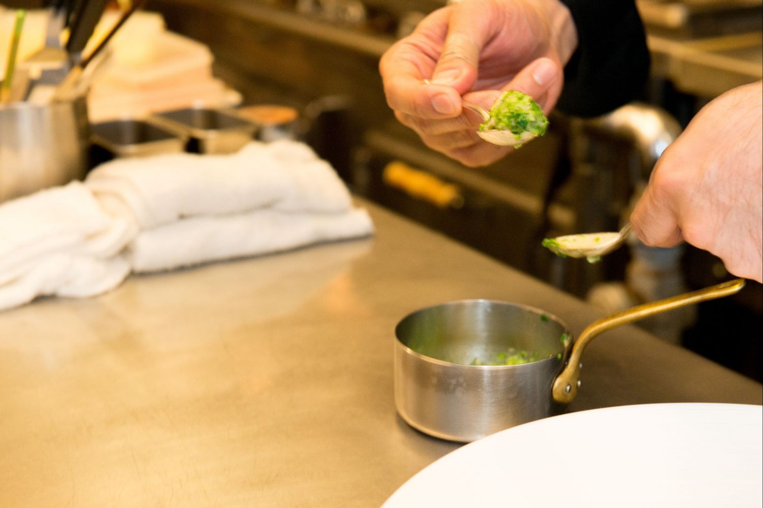 「現地へ行くと、『心を込めてつくられた、この食材を使いたい』という思いが強くなる。素材を高めるにはどうしたらいいかを、より深く考えるようになりました。日本料理の考え方に近づいているかもしれませんが、フランス料理の基本は外しません」