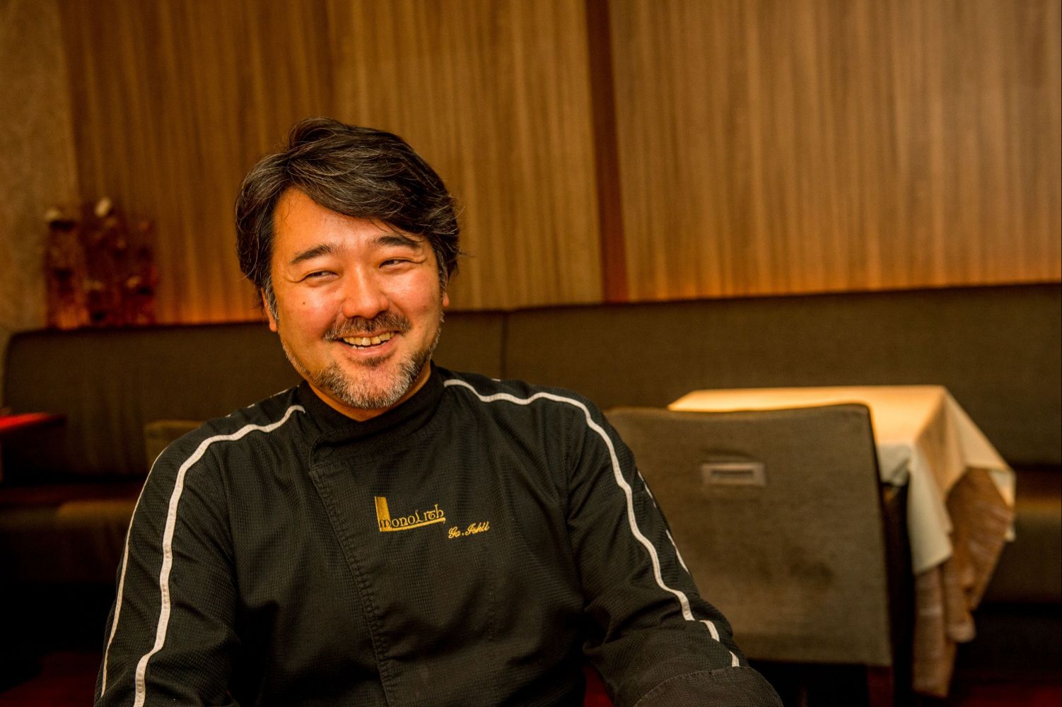 東京都出身。エコール 辻󠄀 東京からフランス校へ。1994年卒業後、東京・青山『アテスエ』で経験を重ね、’98年、再度渡仏。三つ星『ジョルジュ・ブラン』などでの4年間の修行後、『モナリザ丸の内店』に入り、'05年料理長に。'08・'09年「ル・テタンジェコンクール・ジャポン」2年連続準優勝(現在は審査員に)。2010年3月、『アテスエ』跡地に『モノリス』をオープン。テレビドラマ「問題のあるレストラン」や「Chef~三ツ星の給食~」の料理監修・調理技術指導なども務める。