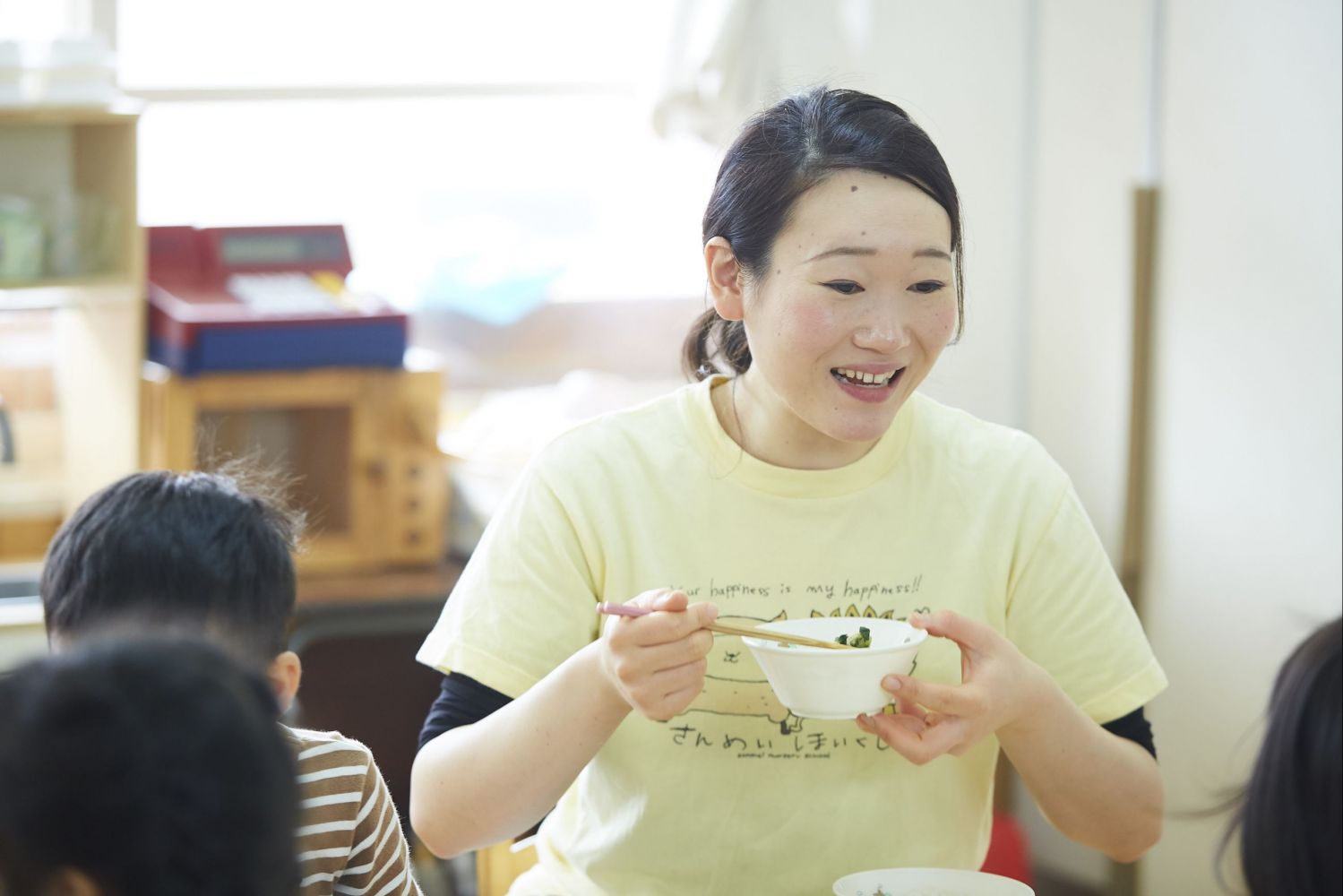 「今まで知らなかった食の分野を、今、子どもたちとの会話や体験を通じて学んでいる気がします。子どもたちの病気予防を食でどう取り組むか、好き嫌いを少しでもなくすためにはどうすれば良いかなんて、学ぶ機会はなかなかないじゃないですか。文献を調べたり、セミナーに参加したり、子どもたちの笑顔を思い浮かべながら取り組めるのは、大変だけど素敵な職場だと思いますね」