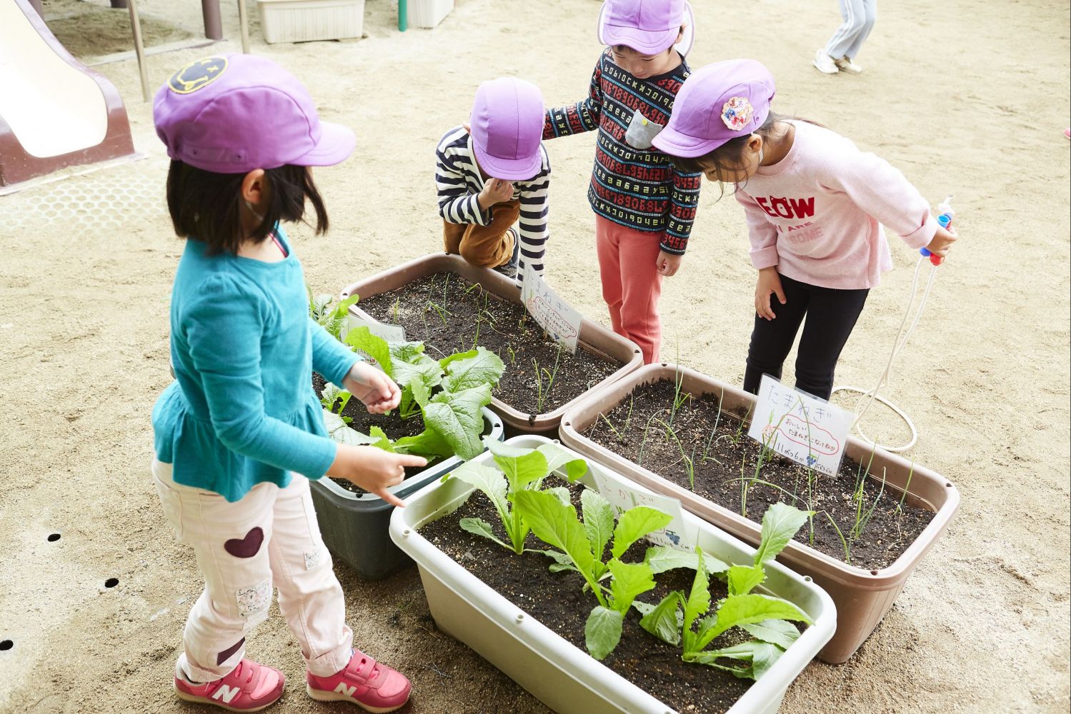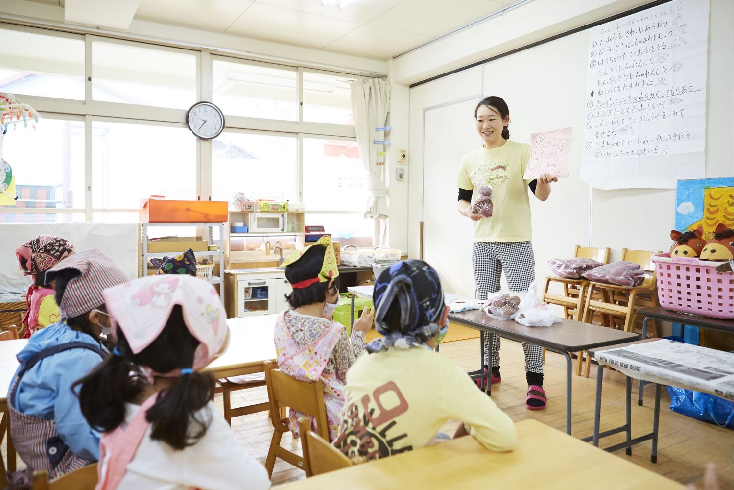 取材当日は、ちょうど彼女たちが企画した食育授業のある、さらに忙しい1日だった。三明保育園では庭の菜園で野菜を育て、収穫し、子どもたちとともに調理しながら食べ物の大切さや栄養のことを一緒に考えていく食育授業を定期的に開催している。