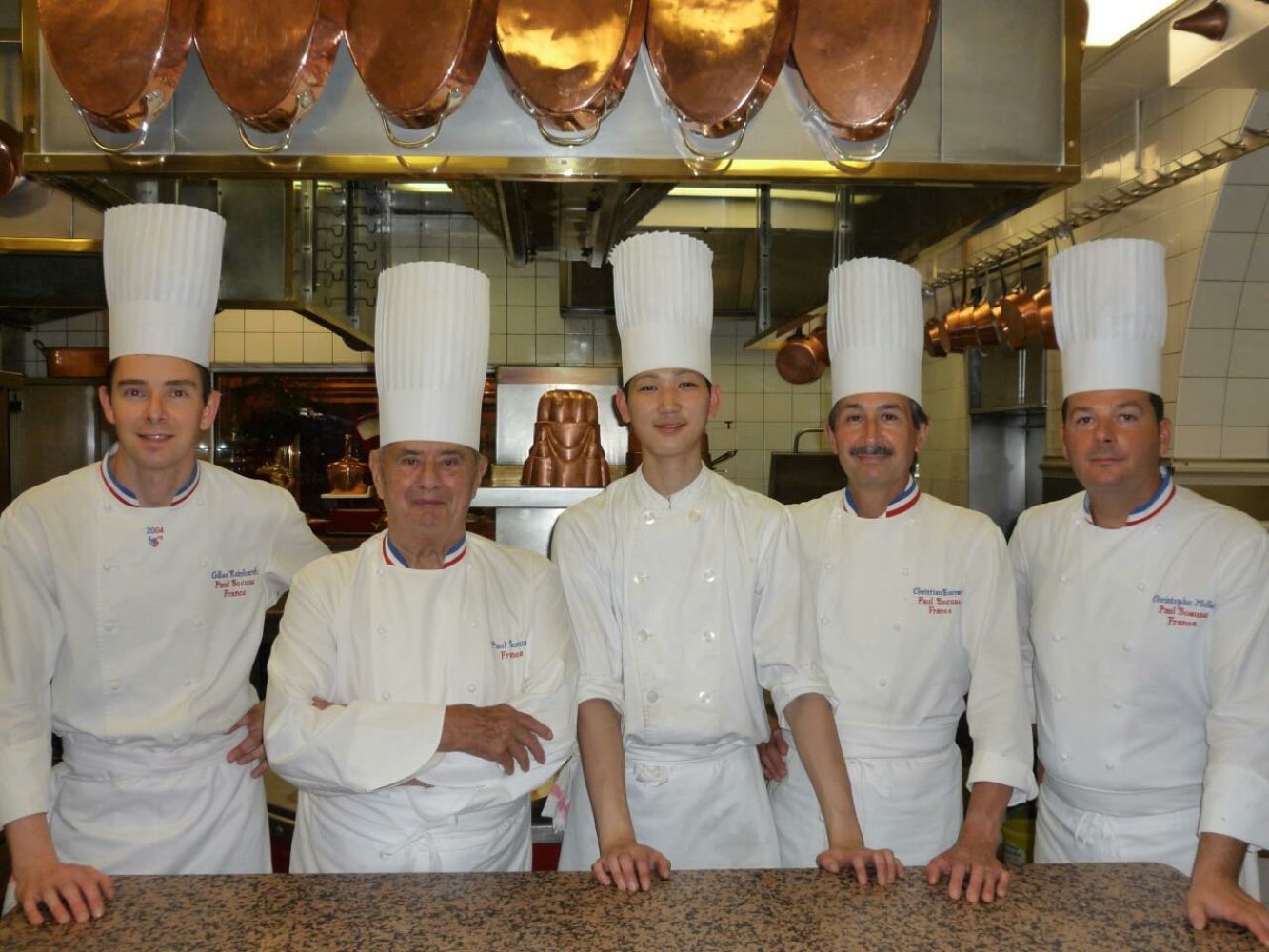 「ボキューズさんは84歳だった当時も、毎日のように厨房をチェックしてスタッフとも積極的にコミュニケーションをとっていました。日本から持っていた本にサインしてほしいとお願いしたら、『もっとあるからあげるよ』とプレゼントしてくださるなど、フランクに接してもらえて。お店にはボキューズさんも含めM.O.F.(フランス国家最優秀職人章)が4人もいたんですが、最後に『一緒に写真を撮ってくれませんか』とお願いしところ、その全員を集めてくだって…。一生の思い出になる体験をさせてもらいました」