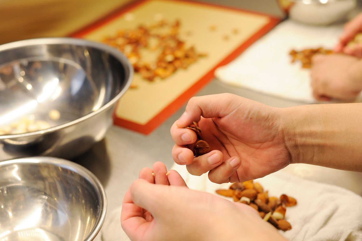 「副材料がいかに大切かは、辻󠄀調グループフランス校での研修で実感しました。研修先が地方のお菓子屋さんだったんですが、ひたすらナッツを挽いたりジャムを焚いたり…すごくしんどかったんですけど(苦笑)、食べるとおいしいんですよね。やっぱり自家製でしかつくれない味があるんですよ」
