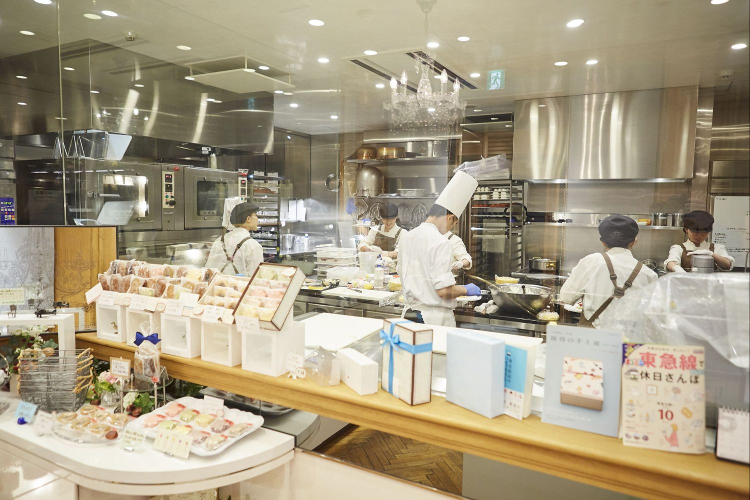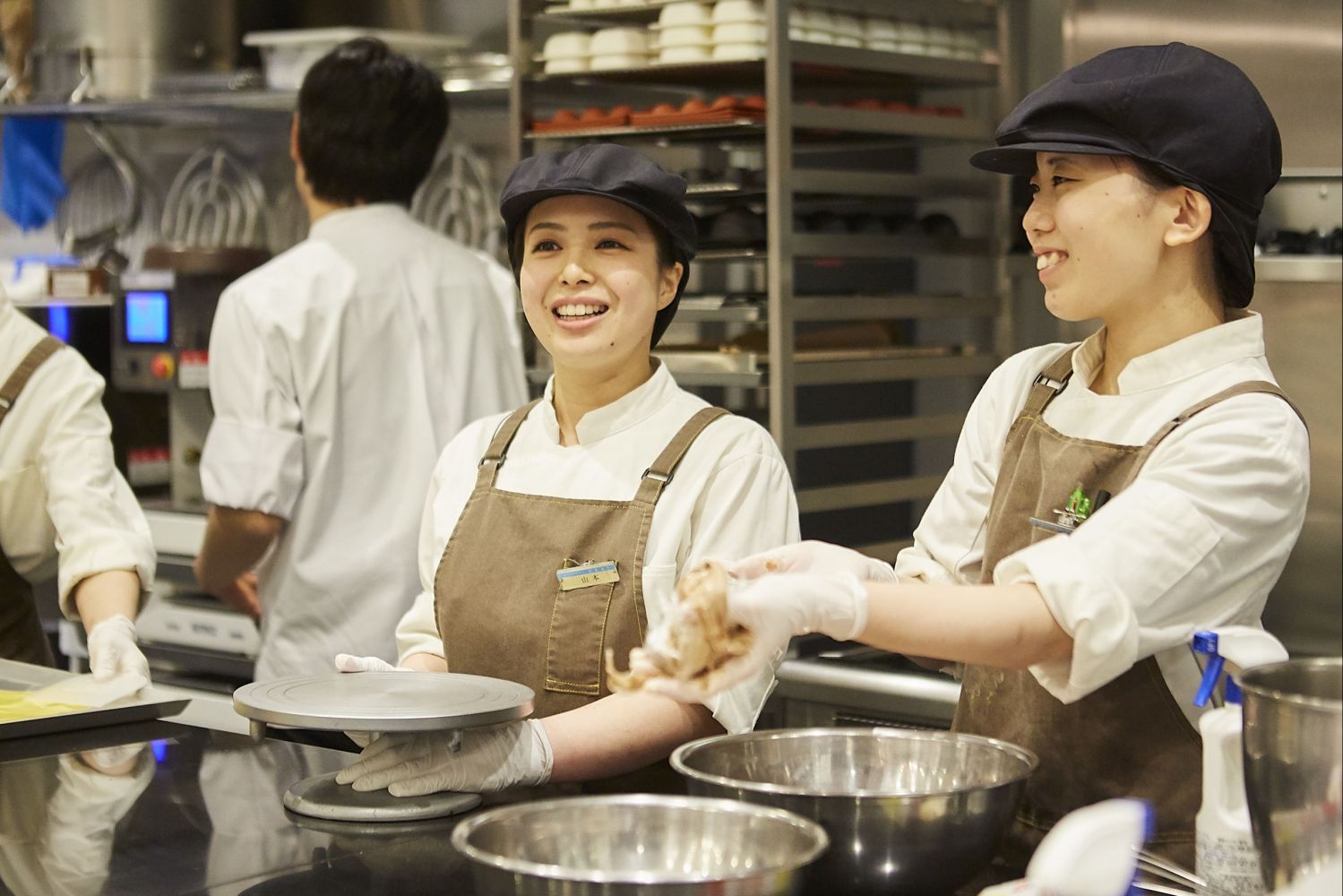 勤務先は店舗兼工房である『アトリエうかい たまプラーザ』。10数名のスタッフがガラス張りの工房でお菓子をつくる姿が店舗からも見え、とても活気が伝わってくる。