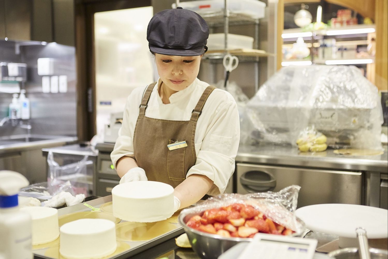 一緒に働いていた先輩パティシエが退職予定だったこともあり、わずか1年弱ですべてのノウハウを身につけた。その後は2年目にしてリーダーとなり、中途入社の経験者をまとめる存在へ。シェフと相談しながら3カ月に1 度入れ替わるメニューを考え、仕込みもすべて担うようになった。