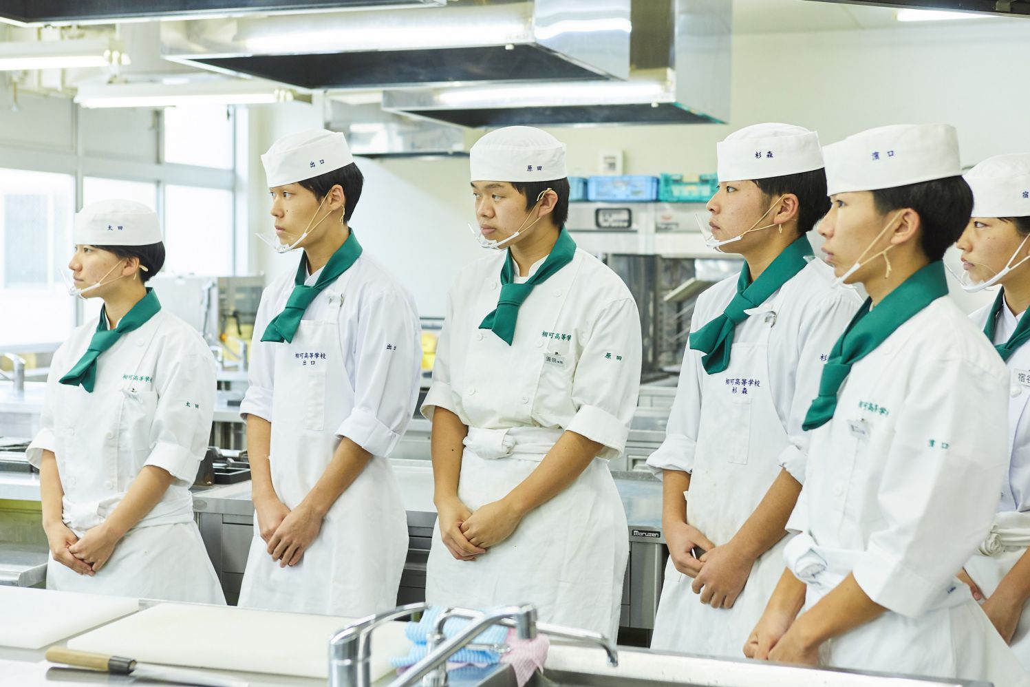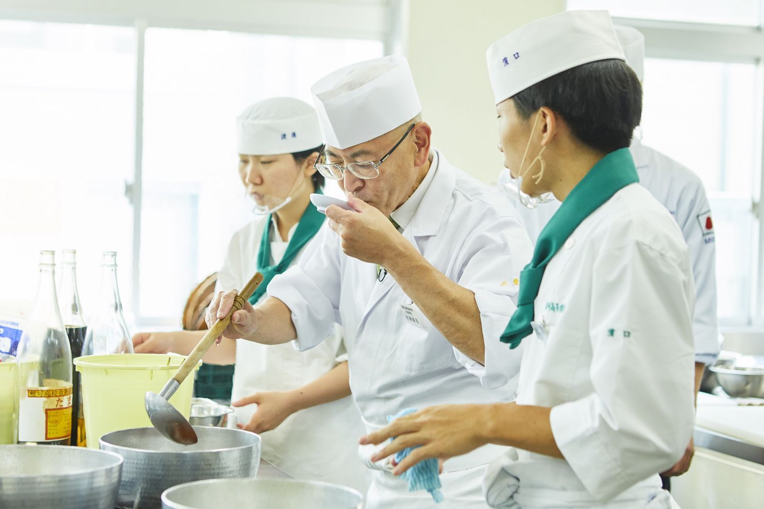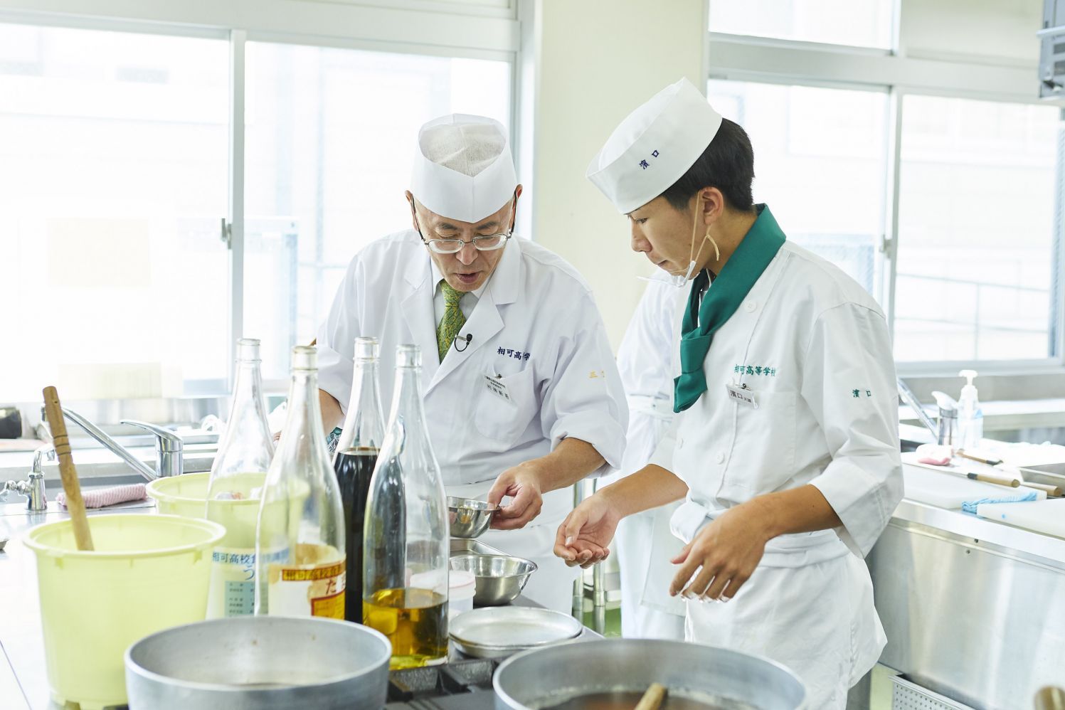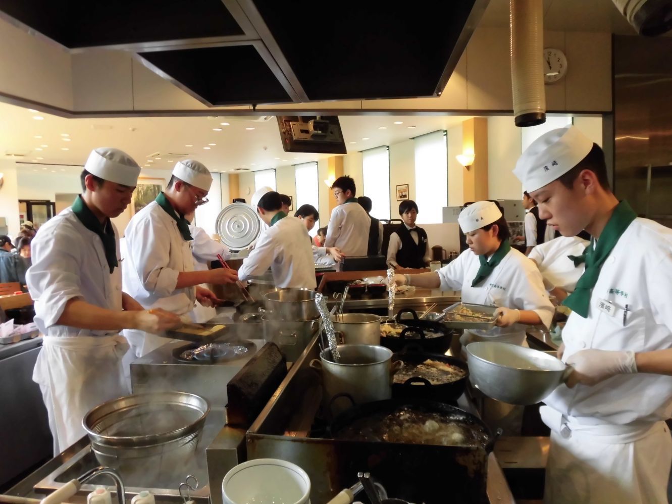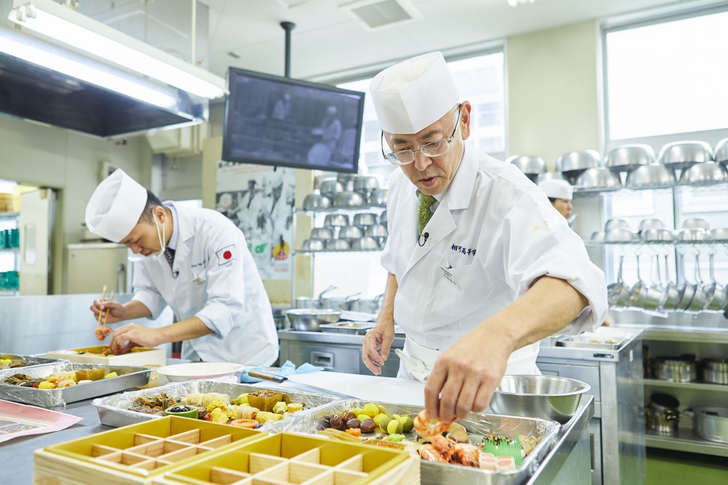 教壇に立つ先生が今何をしてほしいのか。助手には調理技術だけでなく、その場の状況をとっさに考えて行動できる、俊敏な判断力と気配りが求められる。