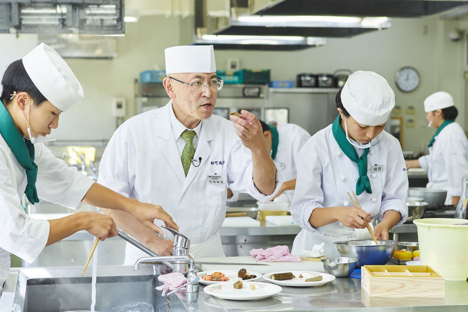 「若い子らが憧れてくれるように、身なりもきれいにしとかないと。慣れた料理でも緊張感は大事。1年の1学期なんて家庭料理と一緒やけど、気ぃ抜いたらあかん。あの子らにとっては初めての料理やから、卵焼きでもやっぱり違うよな、というのを見せつけとかんと。自分が学生のとき、素晴らしいと感動した料理はよう覚えとる」